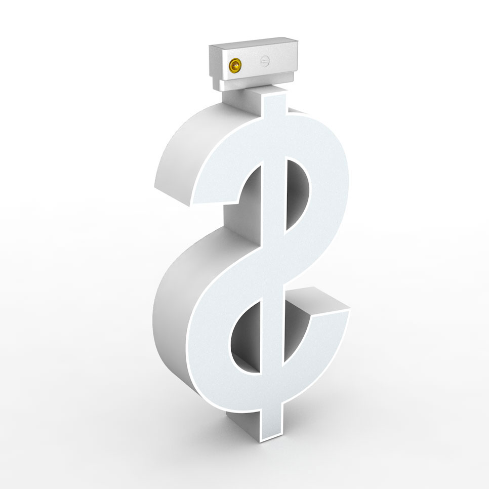 Simbol LED, ( $ ), decorativ, 3D, luminos, seria glisabil track profil Al, 100mm, 6500K, abcMIX, S2345